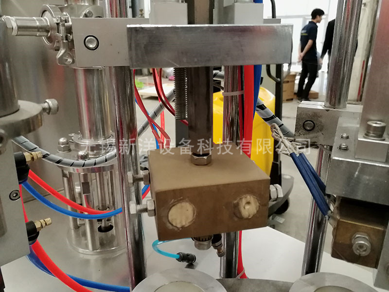 該機(jī)結(jié)構(gòu)緊湊,操作工藝容易掌握,裝量準(zhǔn)確,運(yùn)行平穩(wěn),噪音低維修方便,是一種較好的灌裝封口設(shè)備。